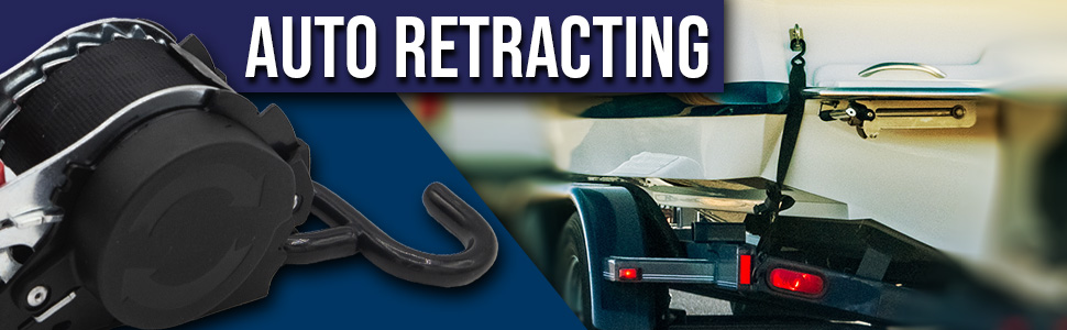 1" x 10' Retractable Ratchet Straps w/ Coated S Hook, Bolt On W/ Fasteners