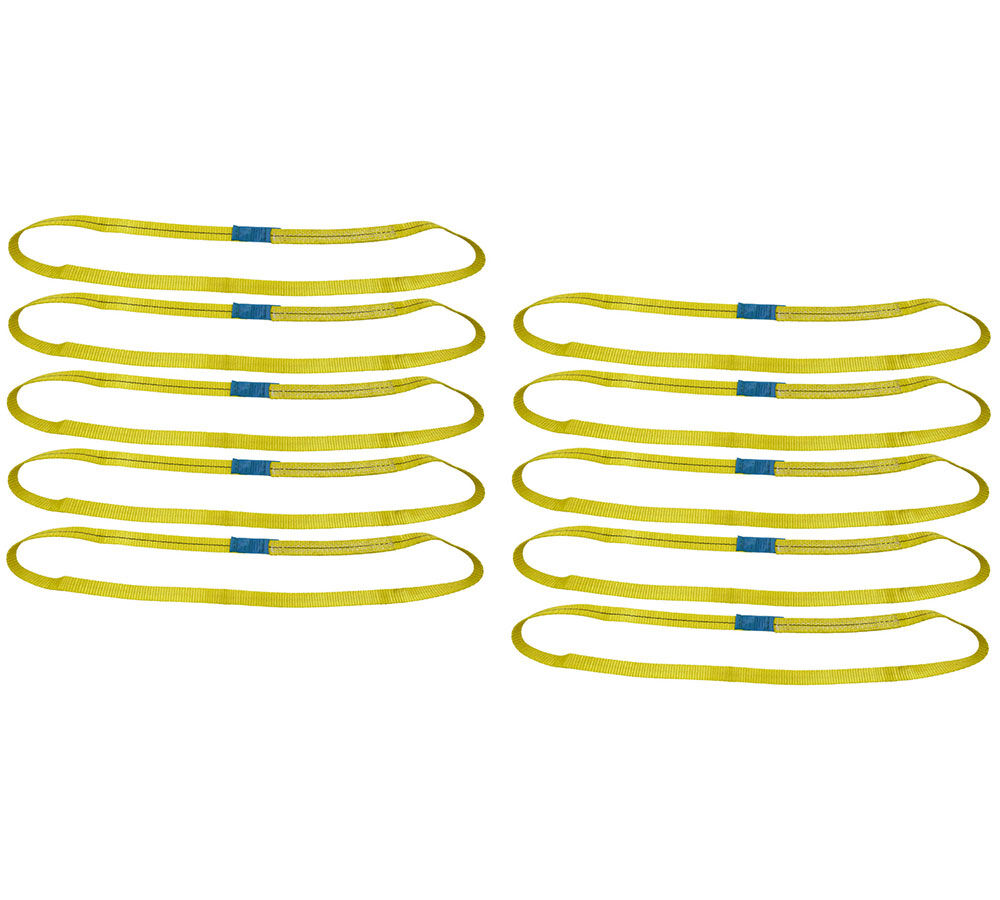 (10 Pcs) 1" x 6' Yellow One Way Round Endless Slings - 2 Ton WLL Endless One Way Sling