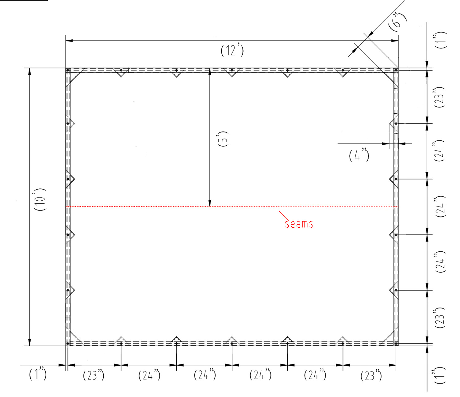 - Grommets spaced evenly every 30-36" (Center to Center). See Tarp Diagram for exact spacing.