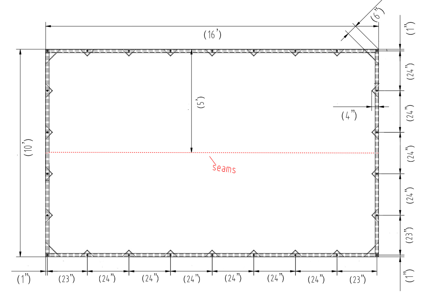 - Grommets spaced evenly every 30-36" (Center to Center). See Tarp Diagram for exact spacing.