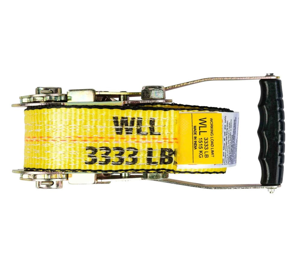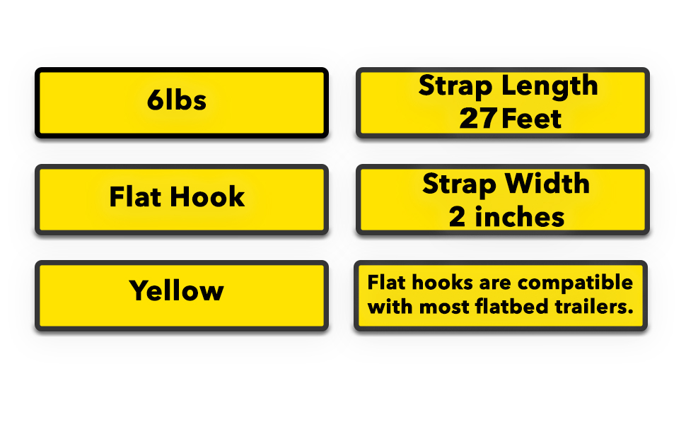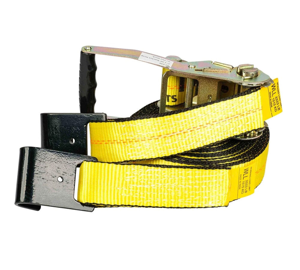 2” x 27’ Ratchet Strap w/ Flat Hook Wide Handle, Trailer Tie Down - Yellow