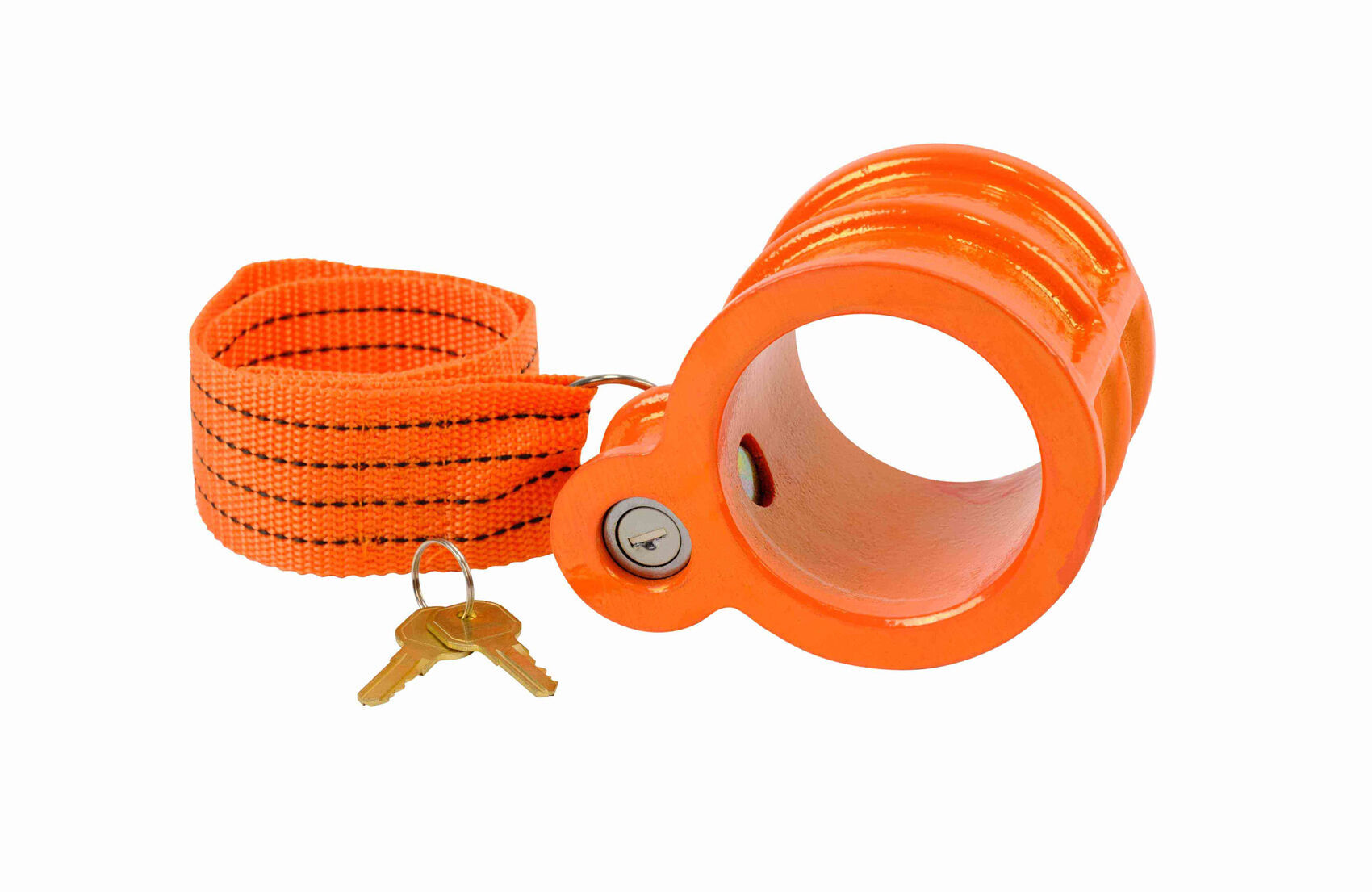 King Pin Lock, Orange Powder Coated with Safety Ribbon