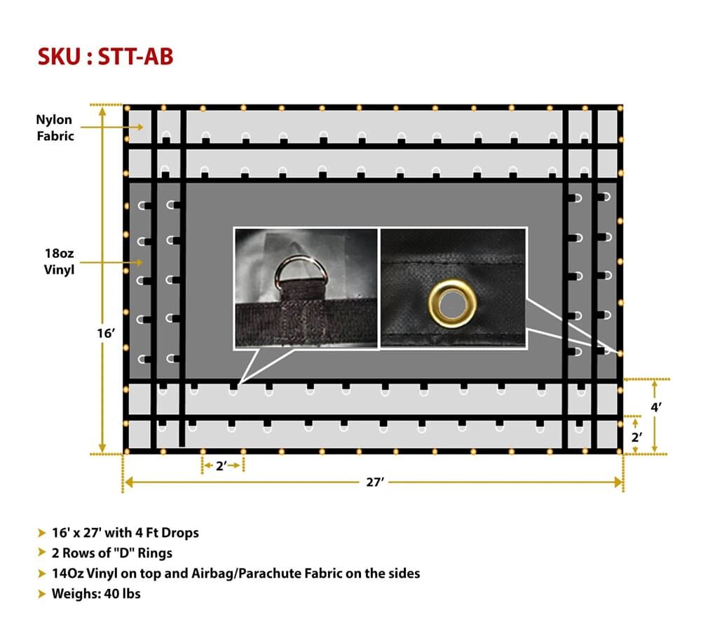 - Dimensions: 16' x 27' with 4 Ft Drop