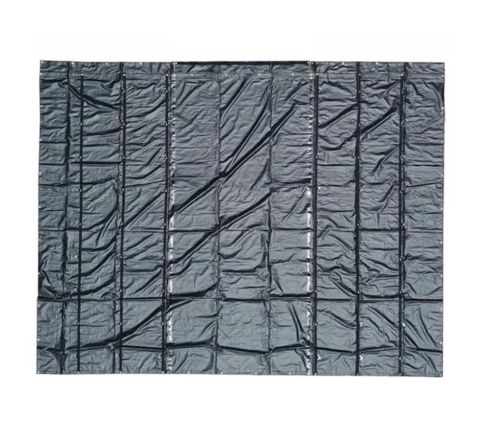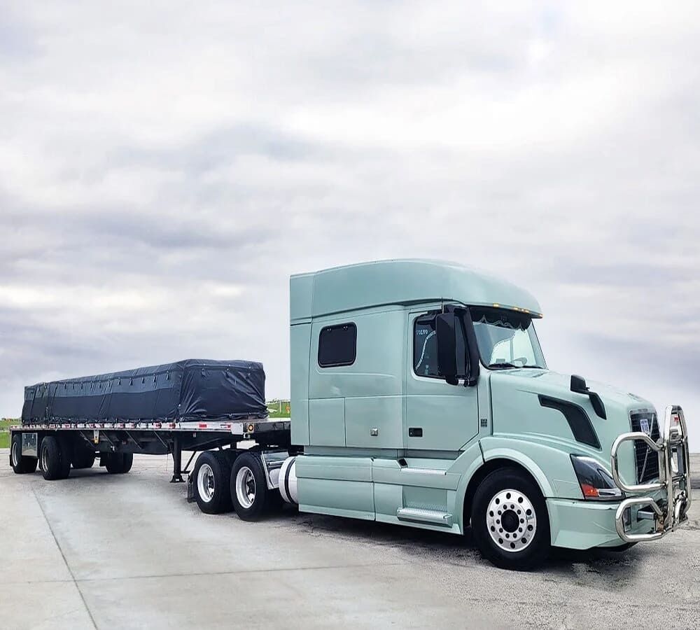 The Airbag / Parachute Fabric Heavy Duty 14oz Steel Tarp – 16' x 27' with 4 Ft Drop, a versatile and rugged solution designed for demanding cargo protection. This tarp combines 14oz heavy-duty vinyl on the top for maximum weather resistance and durable airbag/parachute fabric on the sides, delivering both strength and flexibility where it's needed most. Equipped with two rows of sturdy "D" rings, it offers multiple tie-down points for secure coverage, making it ideal for flatbed trailers and steel hauling. Commonly used by long-haul truckers, freight carriers, and logistics professionals.