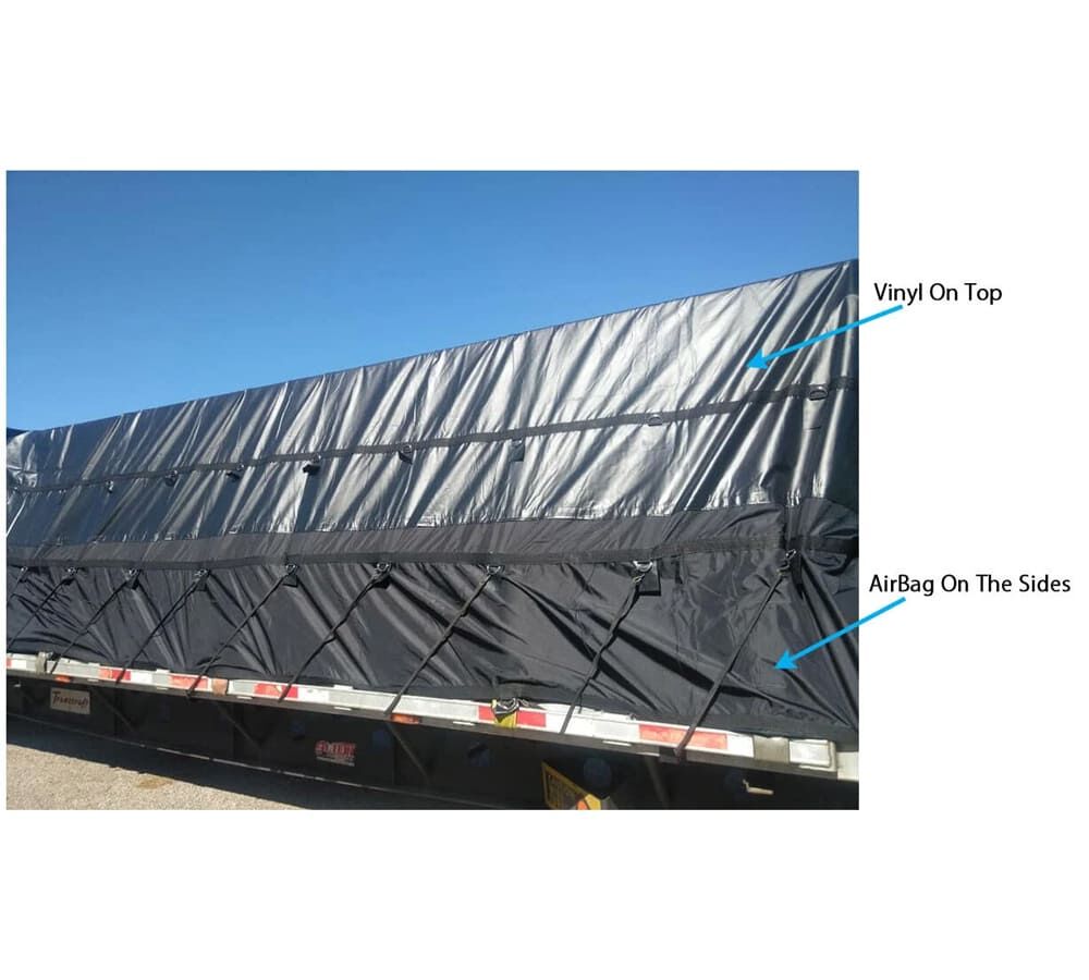 The top & flap are constructed from heavy-duty 14oz vinyl. It is extremely water resistant and will keep your cargo dry. Heat-sealed seams make the nylon airbag tarps 100% waterproof on top and water-repellent on the sides