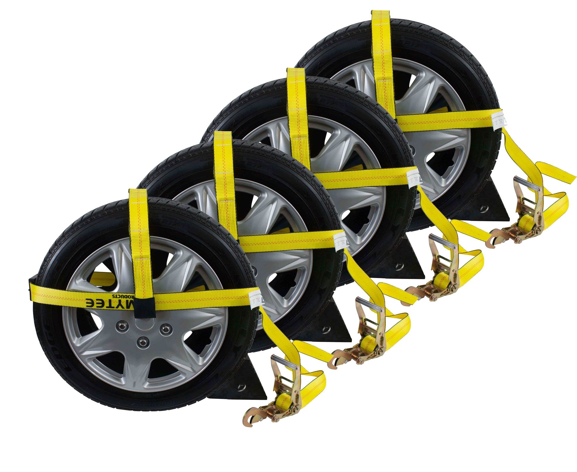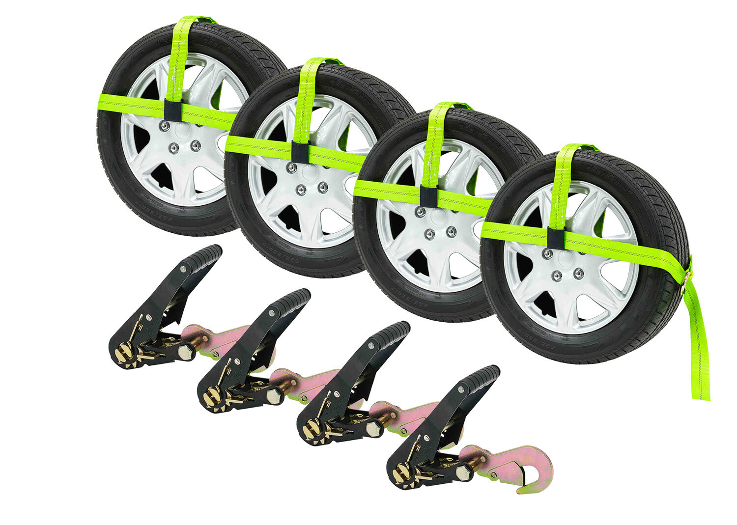 - Special Adjustable Strap designed to fit most tire sizes. Used for hauling vehicles on a flatbed. Easily anchor the car to the deck of your trailer.