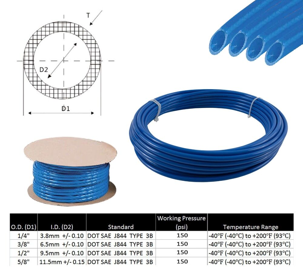 - SIZE: SAE J844 Air Brake Tubing 3/8" x 100' Blue Trailer Nylon Line Hose DOT Approved. (Nominal O.D.: 3/8", Nominal Wall: 0.062")