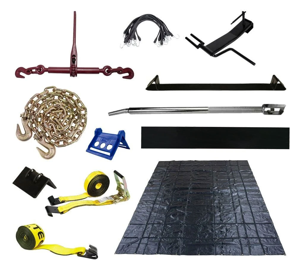 Our Flatbed Equipment Starter Kit for steel hauling Includes all the basic items to get you started as a steel hauler. These items are adequate to secure and protect most loads you would get as a steel hauler. If you need something that is not in the kit, please give us a call and we would be happy to help you.Â